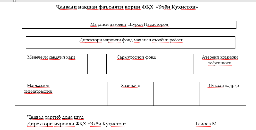 Мақсади асосии фонд ин паст намудани сатҳи камбизоати мардум бо воситаи қарзхои хурд ва бо фоизҳои дастрас ба аҳоли пешниҳод менамояд. Органии олии фонд ин Шурои парасторон мебошад. Аъзоёни Шуро: Тошев Расул Раиси шуро, Маҳмадов Сулаймон, Саломов Ҳоким, Акбердиев Абдуманоф, Рахматуллоев Нусратулло мебошанд.